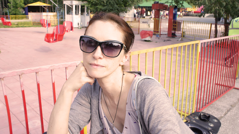 Старший сыночек решил сводить меня в парк Маяковского и накатать на всяких качелях, переворачивающихся вниз головой. Еле отбилась. Согласилась только на традиционную карусель и на фотосессию.